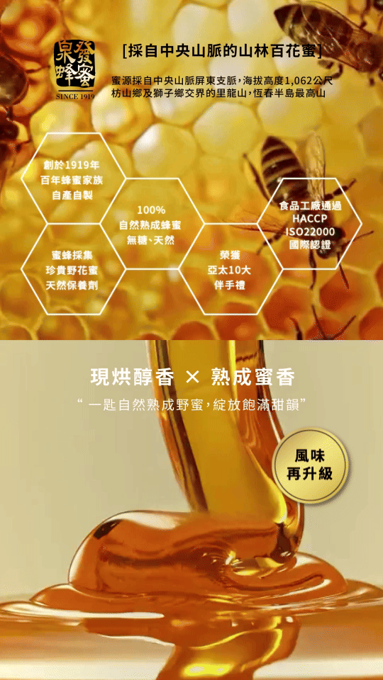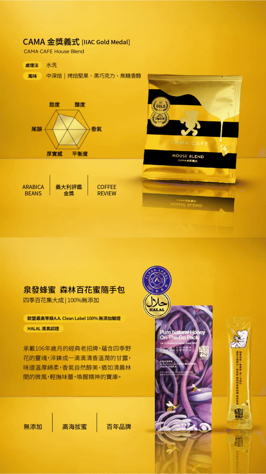 2025 CAMA嚴選與台灣百年蜂蜜品牌-泉發蜂蜜 聯名合作,秉持「1,500朵花才能釀出1克蜂蜜」的職人精神,展現對工藝的堅持。禮盒內使用榮獲歐盟A.A. Clean Label最高等級認證的特選野蜂蜜隨手包,100%無添加,品質安心看得見。